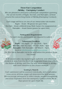 We are pleased to announce a three-part competition spanning the sacred months of Rajab, Shaʿbān, and Ramaḍān, centred around the overarching theme of Akhlāq (Exemplary Conduct).